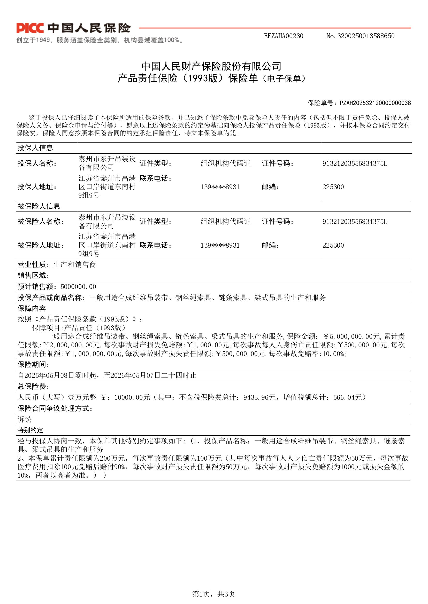 泰州市东升吊装设备有限公司